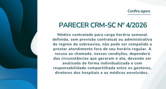 O CRM-SC aprovou parecer em que traz esclarecimentos sobre a responsabilidade técnica nos serviços que realizam coleta de material biológico […]