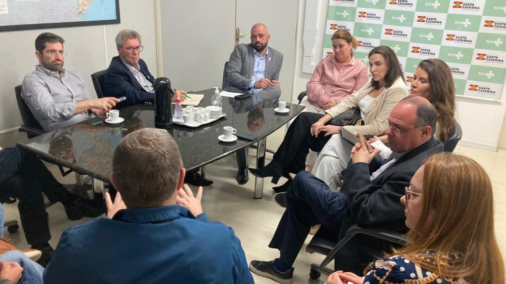 Também participaram da reunião: Dr. Marcelo Ângelo (Diretor do Simesc), Dr. Juliano Pereima (1º vice-presidente do CRM-SC), Mariah Martins (Procuradora-Geral do CRM-SC), Ernani Lange de S. Thiago (Diretor de Comunicação da ACM), Cristina Paulucci (secretária adjunta da SES), Tatiana Titericz (superintendente de Hospitais), Luciane Vilma Rodrigues (diretora de Gestão de Pessoas) e Fábio Gaudenzi de Faria (superintendente de Vigilância em Saúde).
