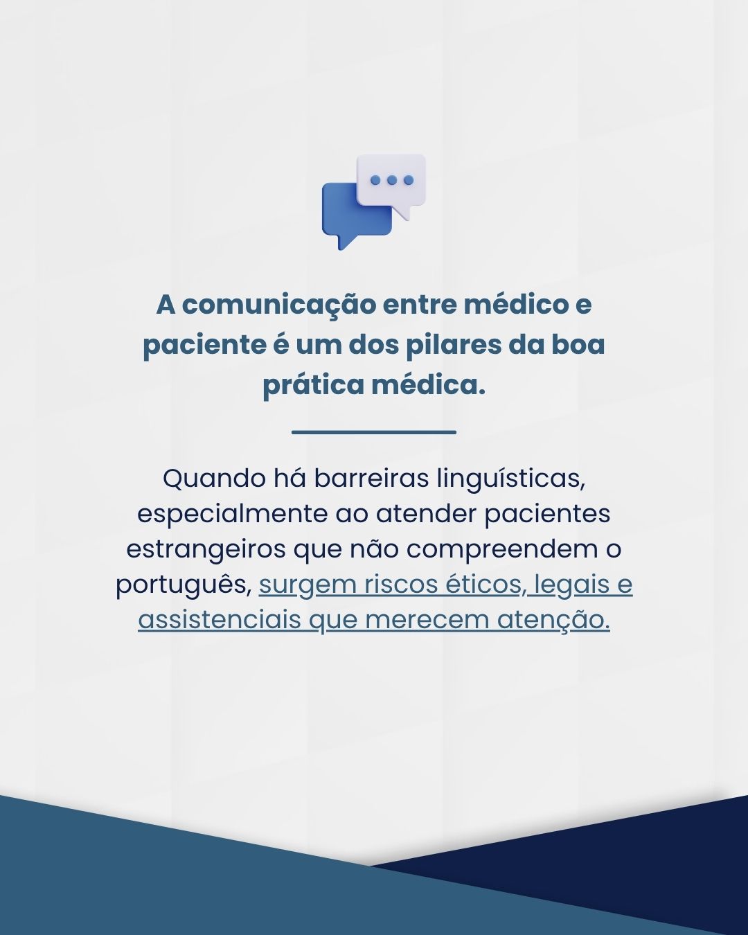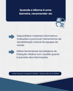 Assim, o Conselho destaca que a adoção de intérpretes e materiais multilíngues não é apenas uma boa prática administrativa, mas uma exigência ética, fundamental para proteger tanto o paciente quanto o médico.
