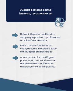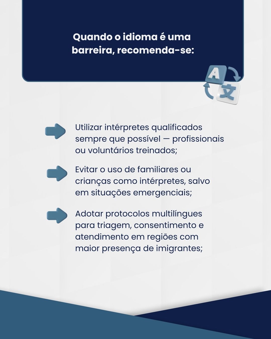 O parecer também ressalta que instituições de saúde em regiões com alta presença de imigrantes devem adotar medidas estruturadas, como: