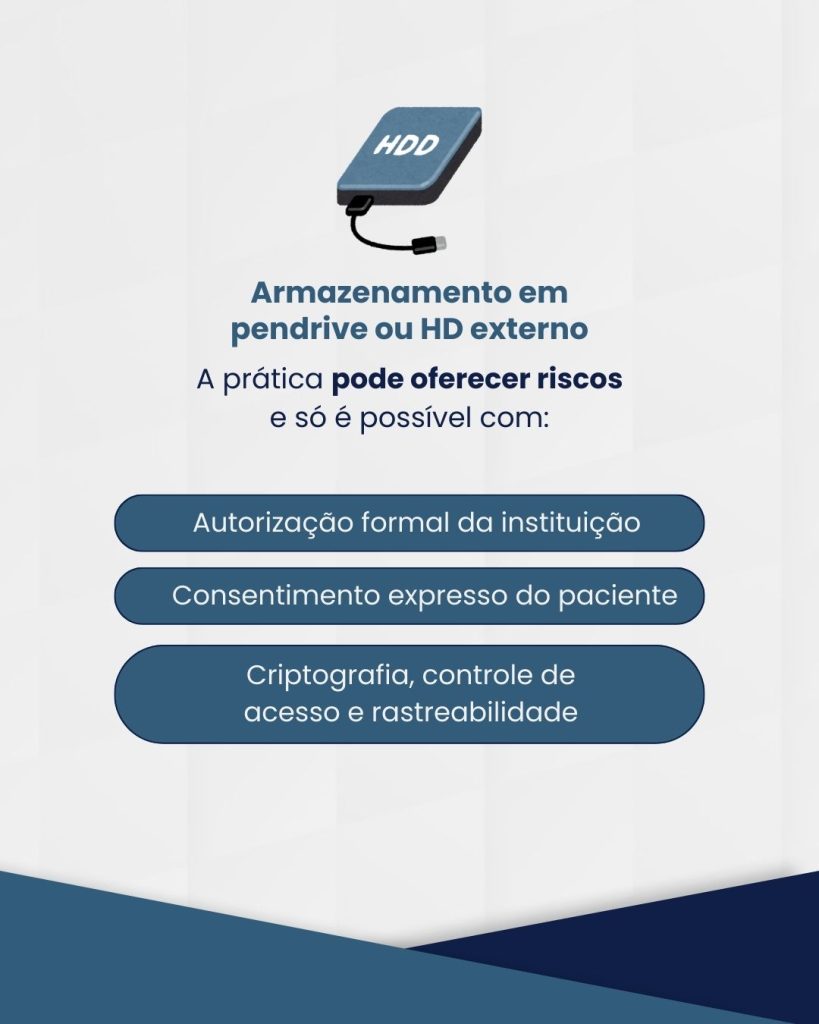 O ponto central do parecer destaca que prontuários médicos constituem documentos sigilosos e científicos, classificados pela LGPD como dados pessoais sensíveis, exigindo medidas técnicas e administrativas robustas para sua proteção. Nesse contexto, o armazenamento de fichas e documentos clínicos em mídias removíveis – como pendrives ou HDs externos – é considerado uma conduta de risco quando não há criptografia, controle de acesso e rastreabilidade. O Conselho frisa que, mesmo quando feito por profissionais diretamente envolvidos no cuidado do paciente, o uso de dispositivos pessoais sem padrões avançados de segurança não atende às exigências legais.