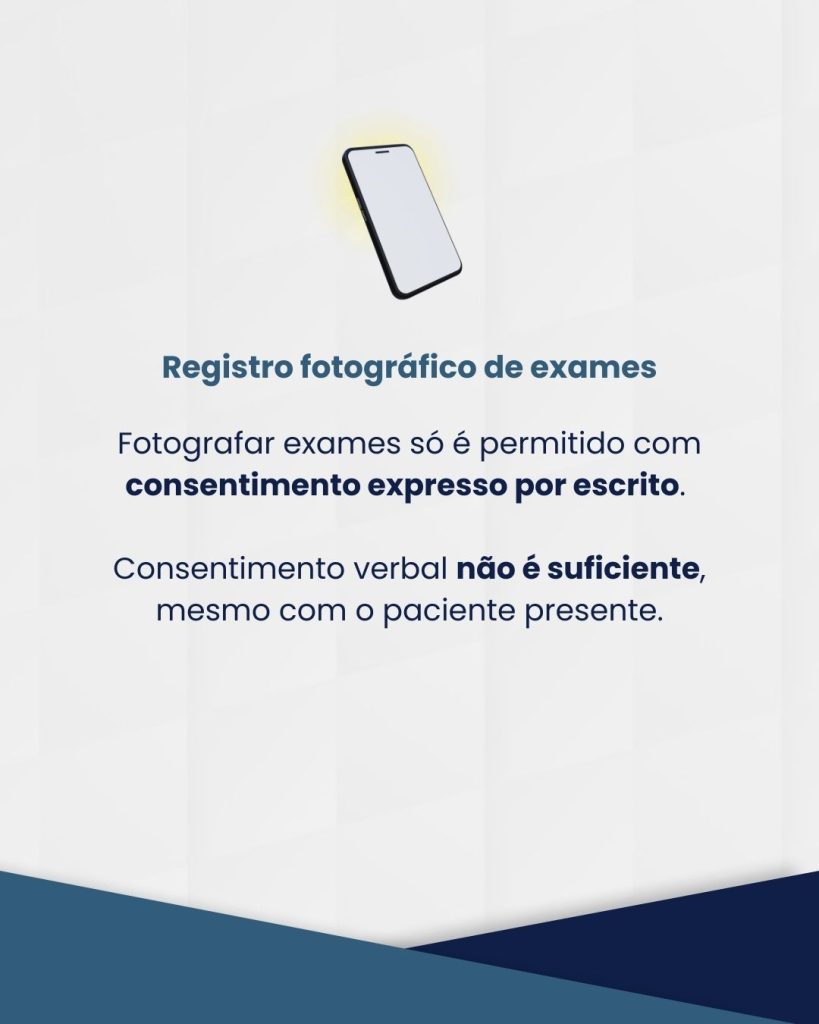 Outro ponto analisado diz respeito ao registro fotográfico de exames realizados em consulta – prática que, embora comum, ainda gera dúvidas entre profissionais. O CRM-SC conclui que o consentimento verbal do paciente não é suficiente para autorizar esse tipo de registro. A legislação exige consentimento expresso e documentado, ainda que os registros tenham finalidade clínica e sejam feitos com o paciente presente. O parecer lembra que o Código de Ética Médica exige formalização do consentimento em qualquer atividade que envolva coleta, uso ou armazenamento de dados sensíveis.