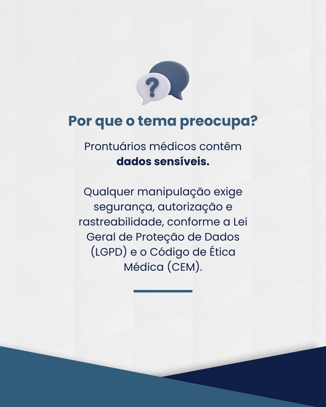 A responsabilidade pela guarda e gestão dos prontuários, reforça o parecer, é da instituição de saúde, sob supervisão do diretor técnico. Qualquer liberação de cópia ou manipulação de dados deve seguir três requisitos essenciais: consentimento expresso do paciente, autorização formal da instituição e garantias técnicas de segurança da informação.