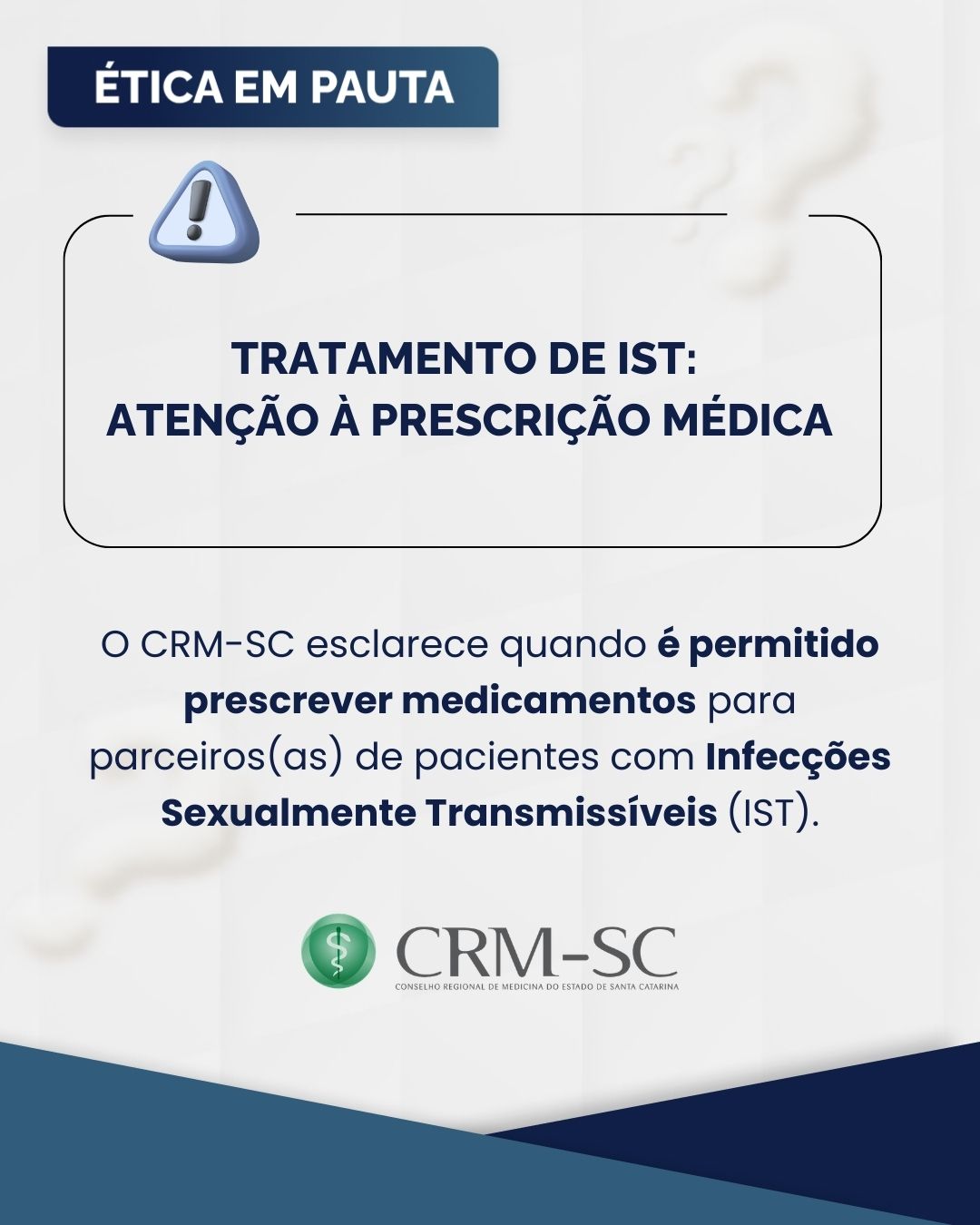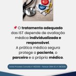 Por fim, o CRM-SC enfatiza que a conduta médica deve estar sempre fundamentada na responsabilidade profissional e na segurança do paciente, destacando que o tratamento correto das IST depende de avaliação clínica individualizada.