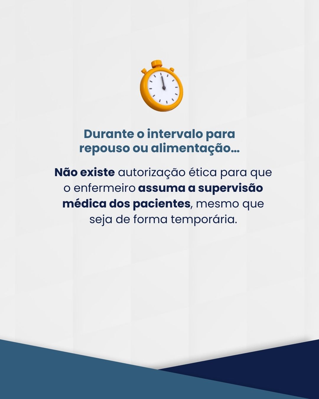 O Conselho Regional de Medicina de Santa Catarina (CRM-SC) emitiu parecer esclarecendo que não existe hipótese ética ou legal para a delegação de atribuições exclusivas da Medicina a profissionais não médicos durante o intervalo para repouso e/ou alimentação do profissional médico. A orientação baseia-se no Código de Ética Médica (Resolução CFM nº 2.217/2018), que veda, de forma expressa, a transferência de atos e responsabilidades médicas a outras categorias profissionais.