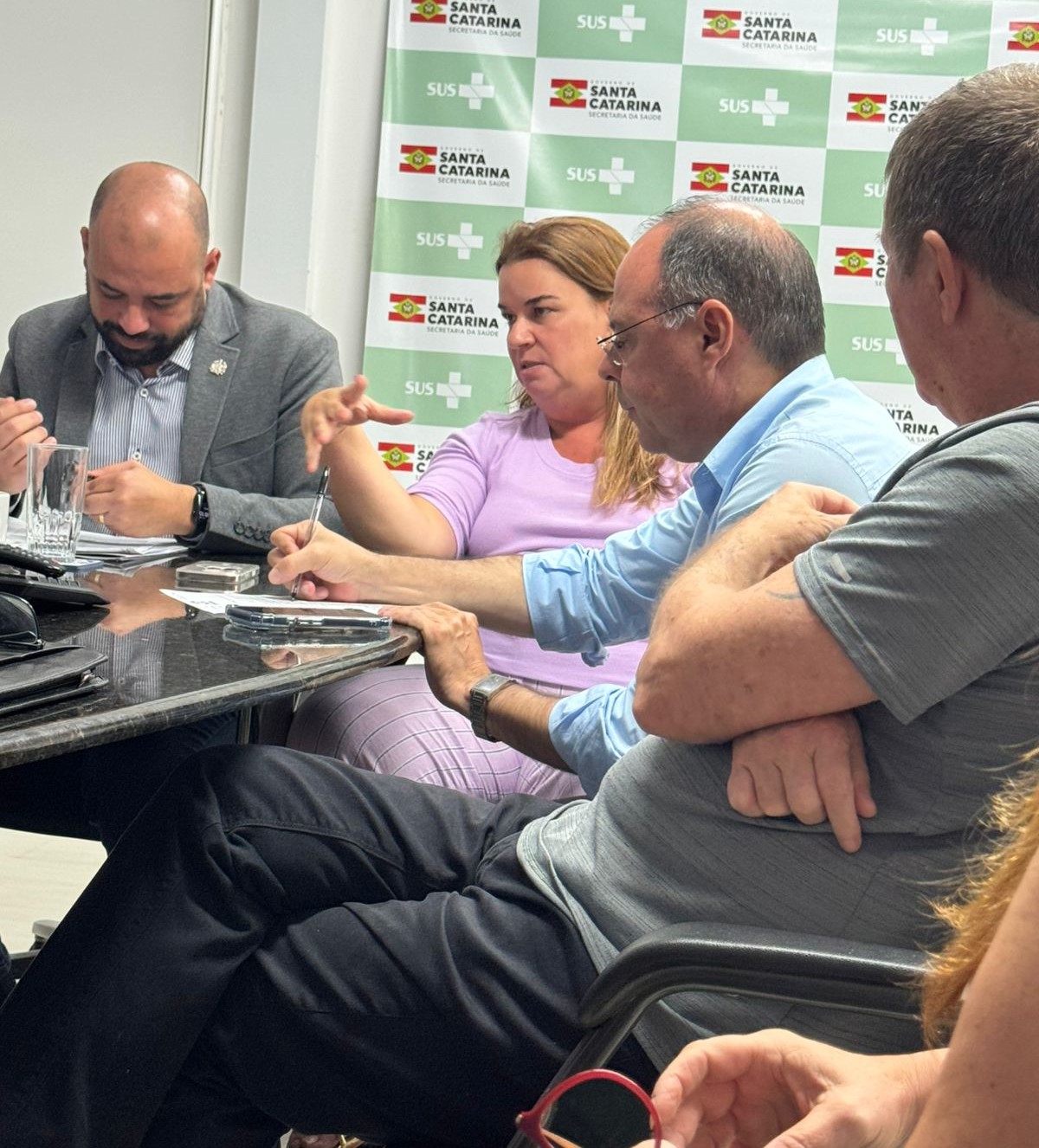 Também participaram da reunião o diretor de Saúde Suplementar do SIMESC, Marcelo Araújo Vieira Angelo, Tatiana Titericz (superintendente de Hospitais), Luciane Vilma Rodrigues (diretora de Gestão de Pessoas), Fábio Gaudenzi de Faria (superintendente de Vigilância em Saúde) e Cristiano Oliveira (gerente de Acompanhamento de Custos e Resultados).